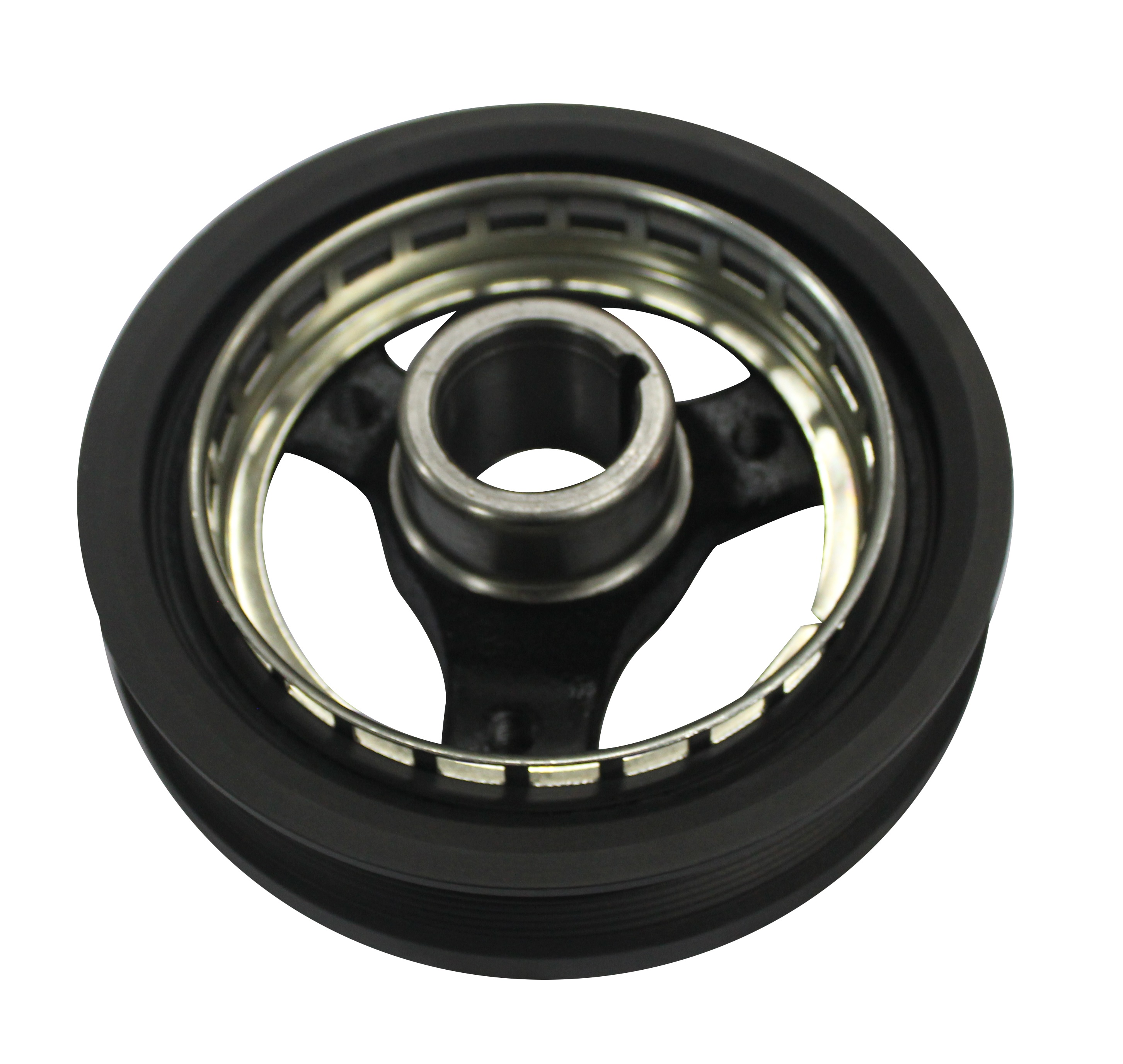 曲軸減震皮帶輪,是發(fā)動機(jī)前端附件系統(tǒng)的重要零件之一,分為橡膠減震皮帶輪、硅油扭轉(zhuǎn)減震皮帶輪及橡膠硅油復(fù)合型扭轉(zhuǎn)減震皮帶輪,基本結(jié)構(gòu)一般由輪轂、外圈、橡膠組成,大多安裝于曲軸的前端,傳遞曲軸輸出的扭矩以驅(qū)動輪系附件。